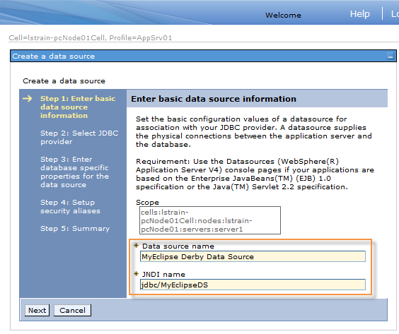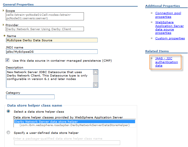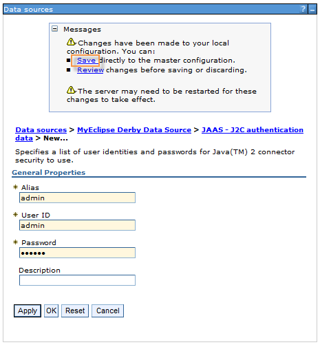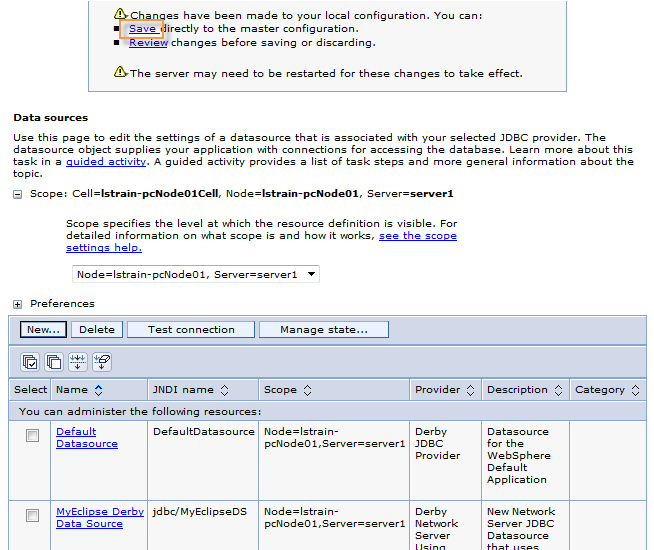 本教程引导您完成在WebSphere中创建数据源,同时在MyEclipse中注重设置数据源连接返回到MyEclipse Derby服务器。设置其他的数据源到其他DBMS(如Oracle,DB2,MS SQL Server等)的过程是类似的。在本教程中,你将学习到: