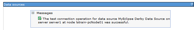 Connection confirmation如果连接失败,返回到MyEclipse并确保MyEclipse Derby服务器正在运行。