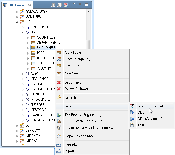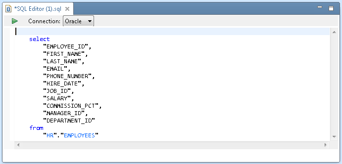 这会生成一个SELECT*语句,并在SQL编辑器中显示。
