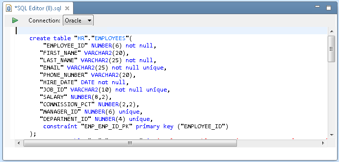 重新创建选定表时会产生一个DDL脚本,并会在SQL编辑器中显示。