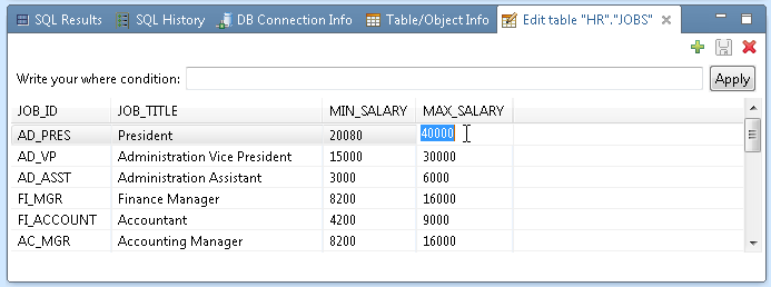 下面的示例显示在第1行中对SAL列的值进行编辑。