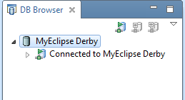 (1)在数据库浏览器视图中打开一个连接来内置MyEclipse Derby数据库。