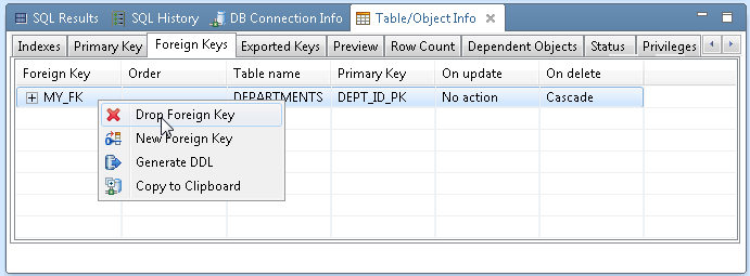 (5)在表/对象信息视图中,选择索引选项,查看新的外键索引。