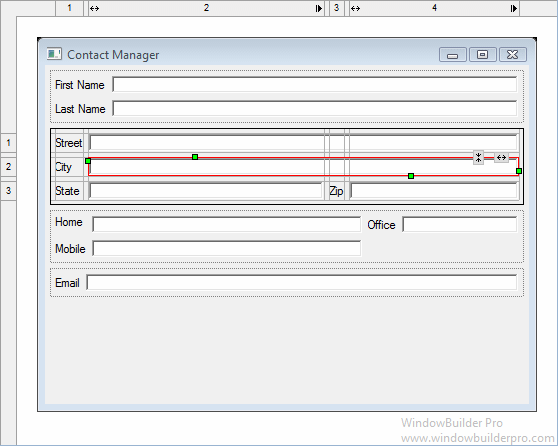 在网格布局中,调整组件使其跨越了多个行和列。在调整操作期间,单元格中被占据的组件会显示为绿色。