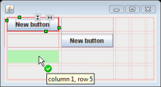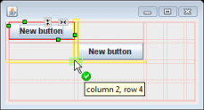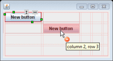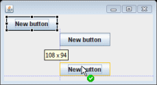 当您在设计视图中移动组件时,布局管理器会提供一种特有的拖动反馈。在像x,y导向一样布局的绝对布局中,live组件被显示使用工具提示移动出其当前位置。提供动态捕捉/对齐点来方便配合其他组件或窗口余量的组件。