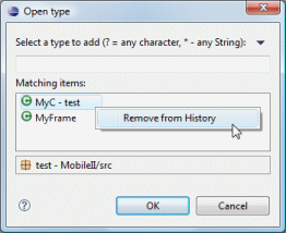 | Choose component | 在编辑器中添加组件。输入类的名称,或从历史记录列表中选择。您可以右键单击列表中的项目,从历史中删除。
