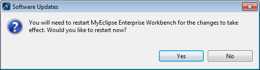 当发现有你想要添加的IDE工具,点击安装按钮并按安装向导安装即可。如果有额外想要添加的额外插件,无论是从产品目录还是更新站点,都可以以任意组合添加它们。所有插件安装完成以后,重新启动MyEclipse应用更改。