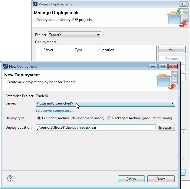 当部署到一个标准的MyEclipse启动应用服务器时,部署位置是通过基于服务器类型和部署方法选择的MyEclipse自动设置。用于远程服务器部署的,有一个"" 服务器类型,其允许部署位置的完整规范。