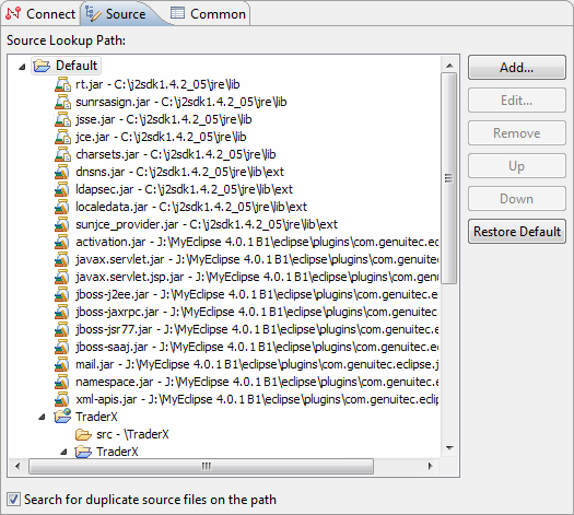 当源查找路径默认为你的调试项目时,你可以从配置的源页面添加其他源查找的位置。
