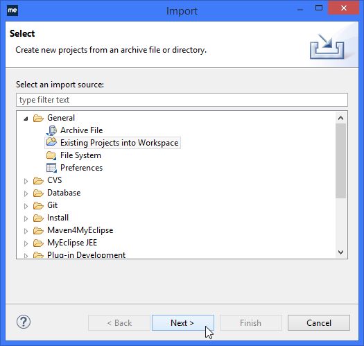 如果该项目是一个Web项目,你可以使用MyEclipse的一键式应用程序启动器来立即运行使用它。右键单击该项目的根目录,并从菜单中选择Run As>MyEclipse Server Application,一键应用程序启动器执行以下操作: